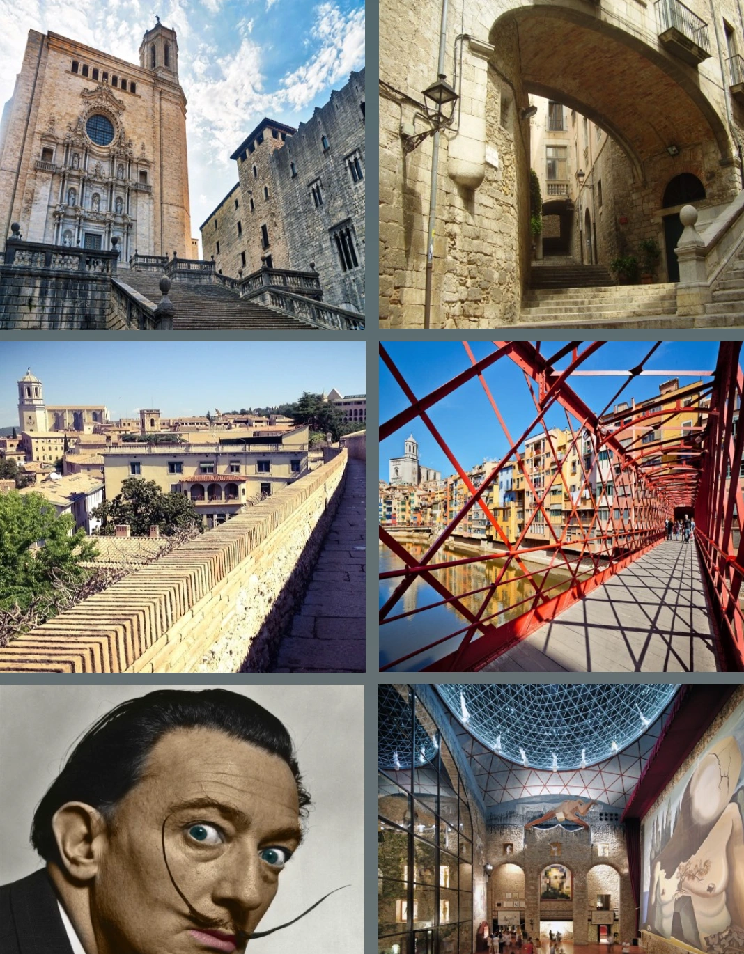 Girona es una de las ciudades más antiguas de cataluña, mundialmente conocida por la serie «juego de tronos». podrás ver la iglesia en la plaza santa feliu, la catedral de santa maría, los baños árabes, el barrio judío, el casco antiguo (barri vell), dar un paseo por las murallas de la ciudad, cruzar el río onyar por el puente de gustave eiffel y admirar las casas de colores pastel a orillas del río. después, podrás visitar el museo dalí, un lugar donde la fantasía y la realidad se fusionan. es un homenaje a uno de los artistas más importantes del siglo xx y una experiencia inolvidable.